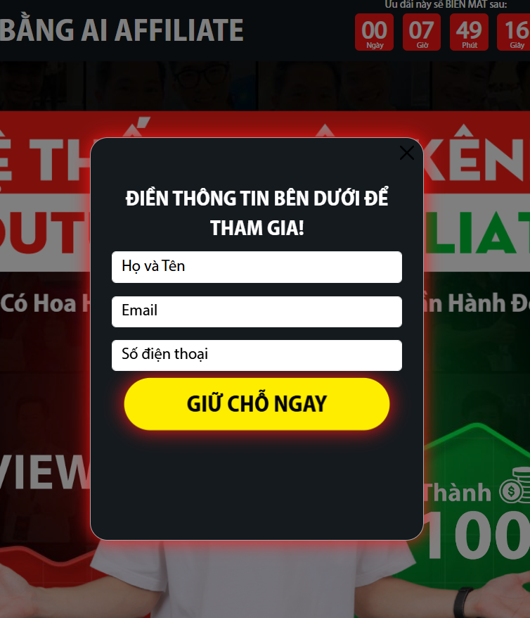 Sau khi bấm vào giữ chỗ ngay thì sẽ ra giao diện này, các bạn điền tên, email, số điện thoại vào và bấm Giữ chỗ ngay nút màu vàng.